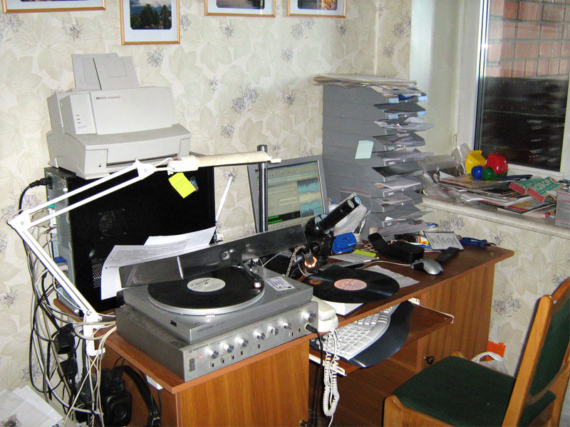"В СССР была создана лаборатория по восстановлению голоса В.И.Ленина. Там сидели проверенные КГБ женщины и под микроскопом реставрировали дорожки старых пластинок. Вот там речь шла именно о правильном восстановлении, потому что они не просто убирали царапины, а полировали поверхность дорожек, чтобы убрать шум шеллака. Но заняло это, насколько я помню, около двух лет работы коллектива. Кроме того, там ещё работали звукоинженеры, добивались правильного тембра, звали на прослушивание тех, кто слышал Ленина вживую. Короче, работа была поставлена по взрослому. В домашних условиях вполне реально отремонтировать царапину. Я сам восстановил таким образом несколько десятков пластинок. Дело это нехитрое, как правило в отремонтированном месте не остаётся никакого щелчка. На фотке рабочее место граммофила-ремонтника, требуется школьный микроскоп х30...50 и заточенная резцом игла от швейной машинки. Вообще-то, пойдёт любая, но от швейной машинки удобнее держать в руке. Вместо микроскопа, наверное, подойдёт большая лупа на штативе и с подсветкой." http://forum.vegalab.ru/attachment.p...6&d=1256337603 Реставрация грамзаписей: http://rus.625-net.ru/audioproducer/2004/07/restore.htm http://rus.625-net.ru/audioproducer/2004/08/antonov.htm |