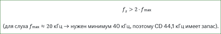 Физика звука: непрерывная волна → дискретные точки Реальный звук- это непрерывная функция давления воздуха во времени (аналоговая волна). Цифровой звук - это дискретные отсчёты + округлённые значения амплитуды. При любом конвертировании мы: - дискретизируем (берём точки), - квантуем (округляем), - сжимаем (выбрасываем данные). Каждый шаг приводит к необратимой потере части информации. Математика дискретизации: теорема Найквиста-Шеннона Чтобы восстановить оригинальную волну без искажений, частота дискретизации \( f_s \) должна быть строго больше двойной максимальной частоты сигнала: https://i.postimg.cc/Tw82xFx5/thumb-...6153d41f9e.png ... это стандарт Red Book (IEC 908), принятый для совместимости с аудио‑CD. 44.1 кГц выбрано именно для CD (исторически связано с совместимостью с видеоносителями и частотой дискретизации 48 кГц). Что происходит при плохом ресэмплинге (самая частая ошибка при конвертации CD ↔ 48 кГц): Если анти-алиасинговый фильтр слабый или отсутствует, частоты выше \( f_s/2 \) складываются обратно в слышимый диапазон. Это называется алиасинг...Математически: https://i.postimg.cc/X7Njn9RT/thumb-...ecf2a7580a.png Результат: вместо чистого 15 кГц появляется нежелательные спектральные компоненты на частоте 5 кГц (побочные тона на 5 кГц) или Металлический оттенок в звучании. Большинство онлайн-конвертеров используют дешёвые (простые) фильтры (упрощённые фильтры) → алиасинг + 10–30 дБ искажений. SSRC с fast=false как раз использует фильтр очень высокого порядка (сотни тапов), поэтому почти не даёт алиасинга. Квантование и потеря битности (24 бит → 16 бит) Каждый бит даёт ≈6 дБ динамического диапазона. Формула отношения сигнал/шум квантования: https://i.postimg.cc/ZKNGtnRc/thumb-...81bd082944.png - 16 бит (CD) → теоретически 98 дБ - это теоретический максимум при идеальном квантовании; на практике динамический диапазон ниже из‑за шума и нелинейностей. - 24 бит → 146 дБ При понижении битности без dithering ошибка квантования становится коррелированной с сигналом → появляются гармонические искажения (не случайный шум, а регулярные призвуки). dithering (добавление шума малого уровня) предотвращает коррелированные искажения при понижении битности. Математически это нелинейная операция - ошибка квантования коррелирует с сигналом. Повторное понижение битности каждый раз поднимает шумовой пол на 6–12 дБ. Это приблизительная оценка; точный прирост зависит от алгоритма и сигнала Lossy-сжатие MP3: почему оно портит даже один раз MP3 использует психоакустическую модель + преобразование MDCT. Алгоритм выбрасывает частотные компоненты, которые считает "неслышными". Психоакустическая модель также учитывает маскировку сигналов (временную и частотную), что влияет на восприятие потерь. https://i.postimg.cc/HWqN2m23/thumb-...7f9be79206.png Но модель приблизительная. Она плохо работает: - на тихих сигналах, - на сложных гармониках (скрипка, фортепиано), - на транзиентах (ударные). При повторном кодировании/декодировании (многократное перекодировании): - ошибки накапливаются нелинейно, - появляются пре-эхо, "птички" (высокочастотные щелчки или же кратковременные высокочастотные артефакты) , потеря стерео и плоский верх (потеря высокочастотной детализации). После 3–5 циклов MP3 → WAV → MP3 искажения уже измеряются десятками процентов по THD+N... по данным измерений с использованием анализатора Audio Precision === Каждый шаг: - добавляет алиасинг и квантование, - усиливает шум, - теряет 10–20 % динамики. Физи