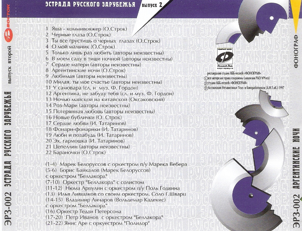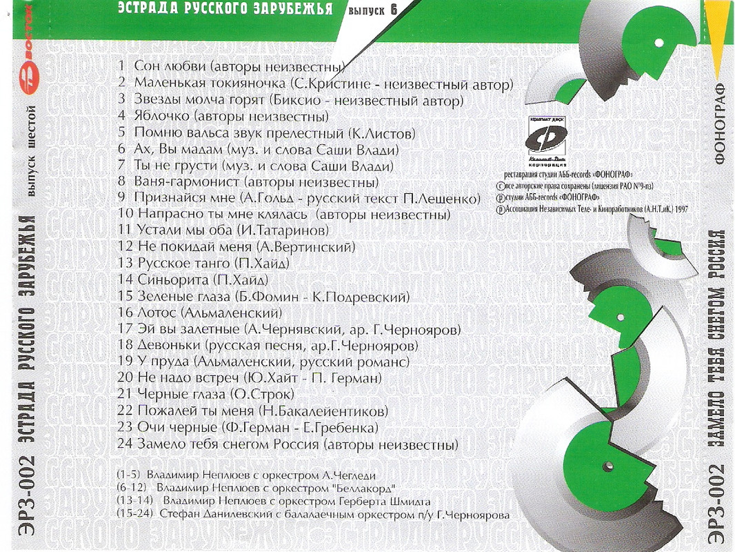 Эстрада русского зарубежья Выпуск 1; 2; 6 (1996-1997) WAV