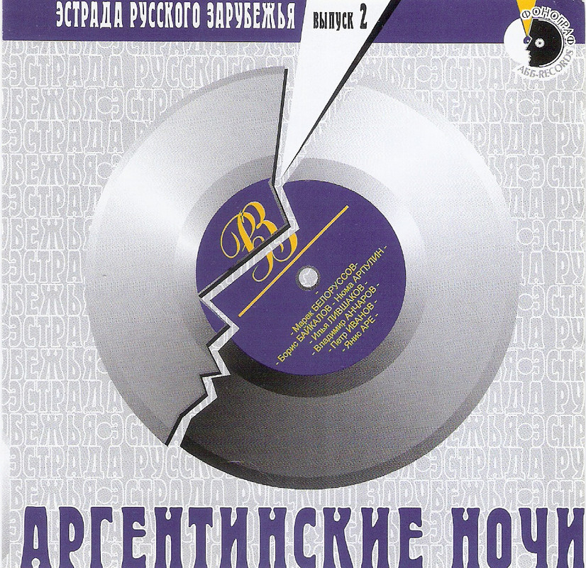 Сборник: Эстрада русского зарубежья Выпуск 2 - Аргентинские ночи Год выпуска: 1997 Жанр: Другое Формат: WAV Качество: Lossless Размер архива: 620 мб Содержание: 1. Яша - коммивояжер. (О. Строк) фокстрот 2. Черные глаза. (О. Строк) танго 3. Ты все грустишь о черных глазах. (О. Строк) танго 4. О, мой мальчик. (О. Строк) уолл-степ 5. Только лишь раз любить. (авторы неизвестны) английский вальс бостон 6. В моем саду в тиши ночной. (авторы неизвестны) танго 7. Сердце матери. (авторы неизвестны) 8. Аргентинские ночи (О. Строк) 9. Любимая. (авторы неизвестны) танго 10. Милая, ты мое счастье. (авторы неизвестны) танго на латышском языке 11. У самовара. (сл. и муз. Фани Гордон) слоуфокс 12. Аргентина, не забуду я тебя. (сл. и муз. Фани Гордон) танго 13. Ночью майской, на китайской (Оксаковский) фокстрот 14. Роз-Мари. (авторы неизвестны) фокстрот из одноименного фильма 15. Потерянная любовь. (авторы неизвестны) танго из фильма "Москва-Шанхай" 16. Новые бублички. (Оскар Строк) 17. Сердце люби. (Иван Татаринов) английский вальс 18. Фонари-фонарики. (Иван Татаринов) фокстрот 19. Люби и позабудь. (Иван Татаринов) фокстрот 20. Эх, гармошка. (Иван Татаринов) фокстрот 21. Цепеллин. (авторы неизвестны) 22. Бараночки. (О. Строк) https://i.postimg.cc/Hx7xPGbD/сканирование0007.jpg https://i.postimg.cc/P5hwpqYL/сканирование0006.jpg https://i.postimg.cc/fy9w5xnw/сканирование0008.jpg https://wdfiles.ru/1sKt5 |