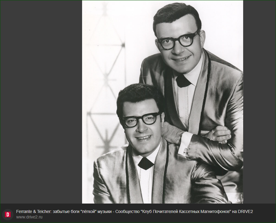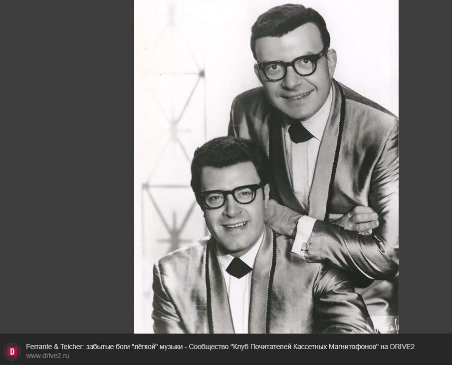 Ферранте и Тейчер познакомились в 1930 году во время обучения в Джульярдской музыкальной школе в Нью-Йорке. Оба были музыкальными вундеркиндами: Ферранте начал заниматься фортепиано в шесть лет, а Тейчер - в три. После окончания школы они стали преподавателями в Джульярде, а в 1947 году начали полноценную концертную карьеру. en.wikipedia.org Сначала дуэт выступал в ночных клубах, затем перешёл к исполнению классической музыки с оркестровым сопровождением. В 1950-х годах они экспериментировали с «подготовленными» пианино - добавляли бумагу, палочки, резину, металлические предметы и другие объекты между струнами, чтобы создавать необычные звуковые эффекты, :)напоминающие ударные инструменты или электронные синтезаторы. Эти эксперименты отразились в альбомах вроде Soundproof (1956) и Blast Off! (1958). en.wikipedia.org В 1960 году дуэт подписал контракт с лейблом United Artists Records и начал ориентироваться на более широкую аудиторию. Их музыка стала сочетать оркестровое сопровождение и лёгкие аранжировки. В этот период они добились коммерческого успеха с такими хитами, как Theme from The Apartment (1960, #10 в Billboard), Theme from Exodus (1960, #2), Tonight (1961, #8) и Midnight Cowboy (1969, #10). encyclopedia.com За свою карьеру, которая продолжалась с 1947 по 1989 год, Ферранте и Тейчер записали более 60 альбомов и компиляций. Они активно гастролировали, давая около 100 концертов в год в период пика популярности, и появлялись на телевидении, в том числе в шоу Эда Салливана. encyclopedia.com Альбомы A Bouquet of Hits (1968) и The Enchanted World Of Ferrante & Teicher (1964) A Bouquet of Hits - альбом 1968 года, в который вошли аранжировки популярных хитов того времени. Среди треков - версии песен MacArthur Park Джимми Уэбба, By the Time I Get to Phoenix Бобби Хебба, Love Is Blue, Theme From «Valley Of The Dolls» и другие. В альбоме также присутствует оригинальная композиция дуэта Why. Аранжировки сочетали оркестровое сопровождение с характерной для Ферранте и Тейчера виртуозной игрой на двух фортепиано. allmusic.com Ferrante & Teicher "A Bouquet Of Hits" LP 1968 NM/NM The Enchanted World Of Ferrante & Teicher - альбом 1964 года, в который вошли аранжировки классических и экзотических мелодий. В трек-лист вошли такие композиции, как Scheherazade, Samson And Delilah, Japanese Garden, Mexican Hat Dance и другие. Альбом отражает ранний период творчества дуэта, когда они экспериментировали с разнообразными стилями и тематиками. disco.market FERRANTE & TEICHER - THE ENCHANTED WORLD OF FERRANTE & TEICHER - Efemera Оба альбома демонстрируют мастерство Ферранте и Тейчера в создании запоминающихся аранжировок, сочетающих техническую сложность с доступностью для широкой аудитории. Их музыка оставалась популярной в коктейль-барах, универмагах и на радиостанциях, ориентированных на лёгкую музыку. mentalitch.com После завершения карьеры в 1989 году Ферранте и Тейчер ушли на пенсию во Флориде, но их музыка продолжала переиздаваться в компиляциях. en.wikipedia.org |