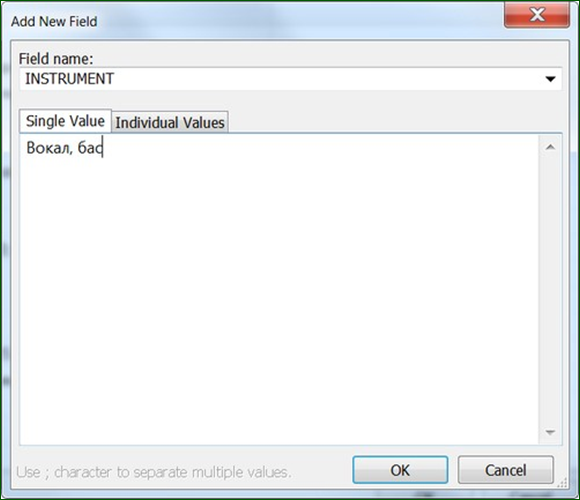 - Если тег должен иметь разные значения для треков (например, разные оркестры), добавьте его ещё в строку выше – «Multivalue fields».
