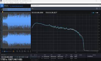 В программе видно что действительно на оцифровке https://www.vsetutonline.com/forum/s...ED%F1%EA%E8%E9 имеет место неслабая такая, некосметическая цифровая обработка - отрезаны пороговым фильтром ВЧ начиная с 21 кГц.